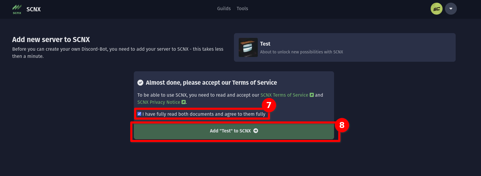 Getting started on SCNX requires a quick setup, but you'll be able to create your own Discord-Bot right after that.
